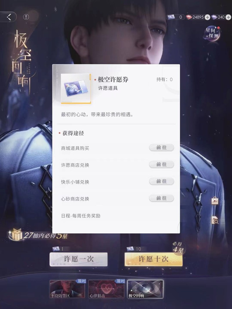恋与深空中的极空许愿券是抽取常驻卡池的重要道具,很多玩家都在寻找高效的获取方式。这款沉浸式恋爱手游为玩家准备了多种获取蓝票的途径,下面就来详细介绍一下。