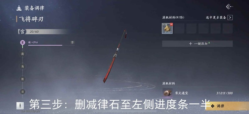 上述调律法的本质是【垫子法】+【玄学法】结合,旨在提升调律词条的【不歪】概率,缺点仍需重申,很消耗时间、调律材料、通宝。如果连续两件装备上述办法不奏效,推荐使用【一键添加调律】