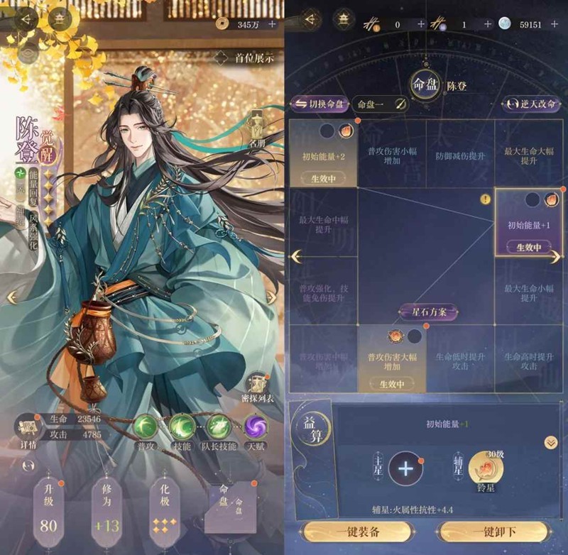 每个宝宝等级命盘练度不一样,可以参考自行调整