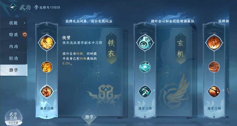 1.菜单-武功-左侧-潜学(目前偷师重置了),不消化活力,每个职业的去偷一下。
