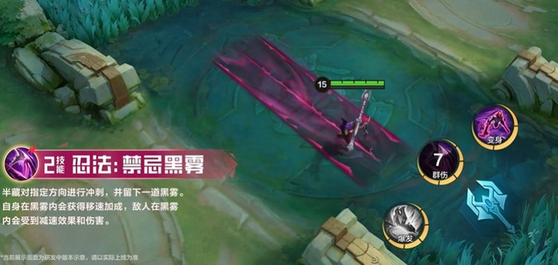 在展示视频中,半藏的技能和战斗风格得到了全面呈现。他的被动技能“天魔羽斩”是其核心机制之一,当半藏周围有单位死亡时,会转化为天魔之力,击杀非英雄单位可获得2点天魔之力,击杀英雄单位则可获得20点天魔之力。这种机制使得半藏在团战中收益极高,但也需要队友的配合才能发挥最大作用。
