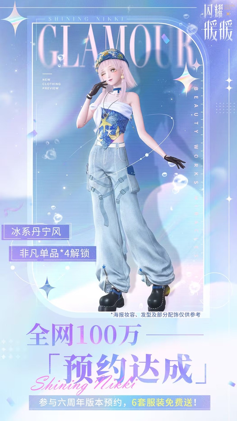 六周年版本更新福利:六周年版本更新后,搭配师们可免费获取6套服装。7月14日至8月2日期间,达成星光百货阶段预约,共可解锁4套六周年版本预约礼。当预约人数达到300万时,将解锁制作组特别助力的专属六周年福利——1套全新闪耀套装,该套装包含设计师之影及记忆回响,且升级、升星材料100%返还,集齐并复苏后还可通过图鉴等获取共1300粉钻。