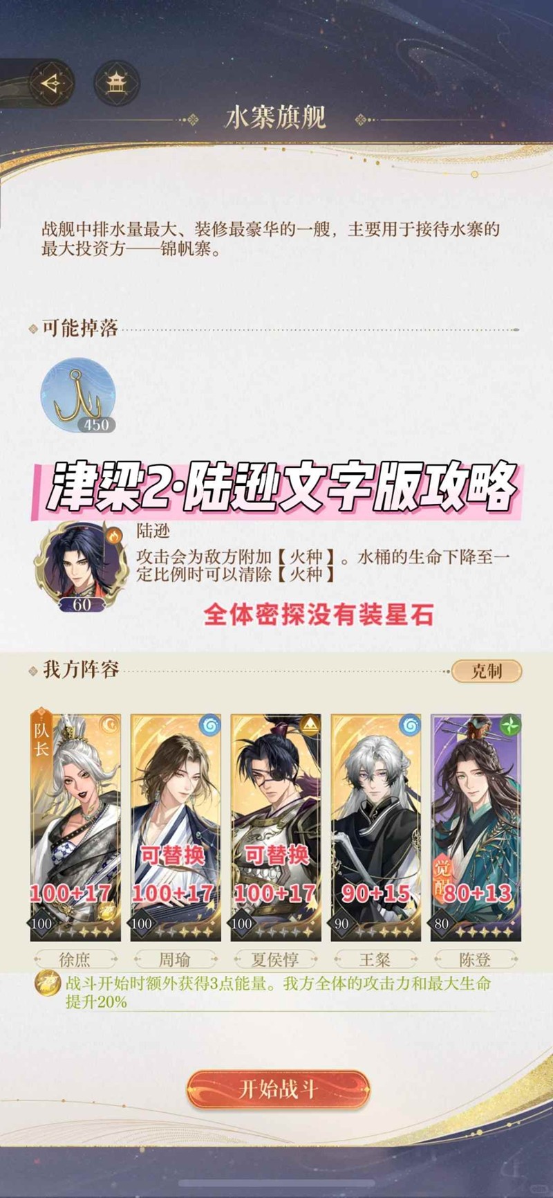 以上就是如鸢江东万里船攻略,渡水津梁2·陆逊文字版攻略的全部内容了,更多游戏资讯,攻略内容敬请关注切游网,您的支持是我们努力的动力!