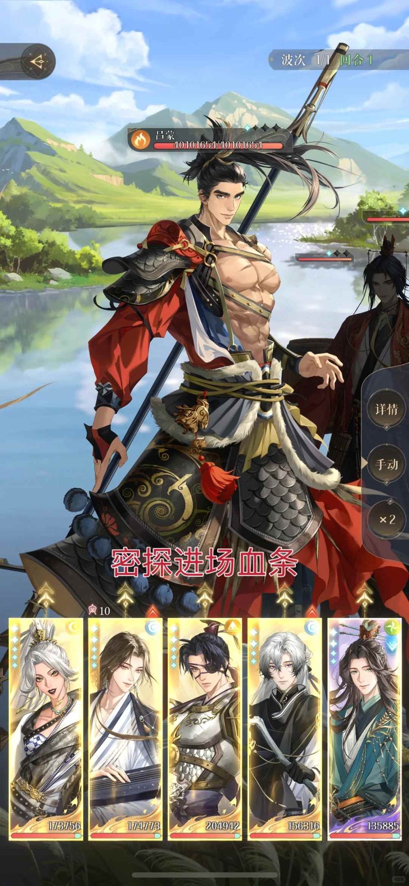 回合2: 粲大,惇平a,瑜平a,登平a,庶大(传幡启动所有密探自动放一轮大招,陆逊死亡)