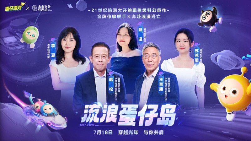 7月18日,蛋仔派对×未来事务管理局合作第二弹即将开启。本次合作特邀五位著名科幻作家:韩松、李夏、苏莞雯、王晋康、昼温担任三周年特邀科幻顾问,他们将用自己的想象力和创造力,为《蛋仔派对》的联动地图注入独特的科幻灵魂。