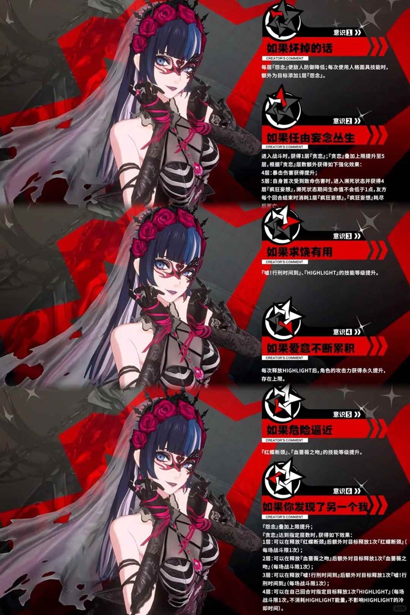 二意识:贪恋层数增加至五层,四层提升暴伤;五层受到致命伤害时延迟四回合死亡