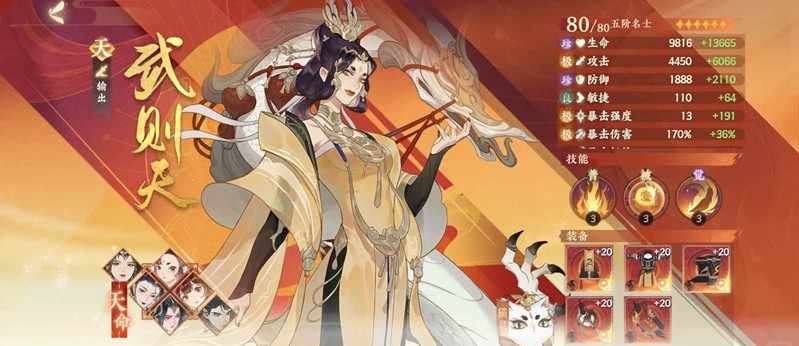 忘川风华录名士的主要属性分为生命、敏捷、暴击强度、攻击、防御等。每一位名士的主要属性都不相同,玩家根据关卡的特点,以及名士主要属性的匹配度,进行出战阵容、名士灵气相关的搭配。初始30必得的天卡之一武则天,新手玩家应该怎么搭配使用呢?小编为你准备了一份攻略,一起来看看吧~