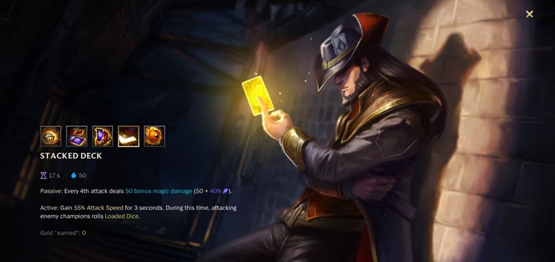 被动提升卡牌大师的攻击速度,并且每四次普通攻击会造成额外魔法伤害。这个技能增强了卡牌的持续输出能力,配合W技能可以打出不错的爆发。
