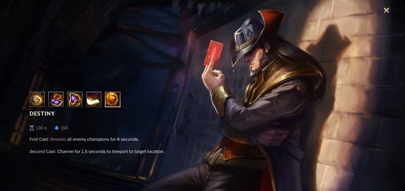 卡牌大师开启全图视野,短暂延迟后可以传送到地图任意位置。这个技能让卡牌拥有极强的支援和分推能力,是带动游戏节奏的关键技能。
