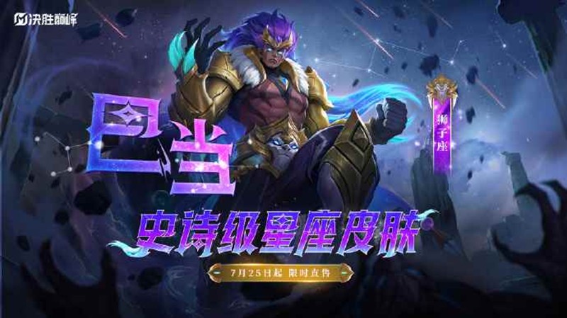 《决胜巅峰》巴当史诗皮肤「狮子座」将于7月25日限时上架商城,感兴趣小伙伴不妨去体验一番~