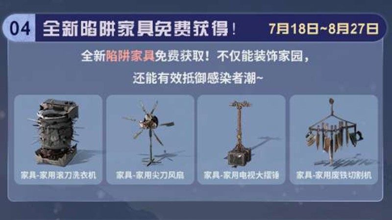全新陷阱家具:为你的庇护所增添更多防御手段。