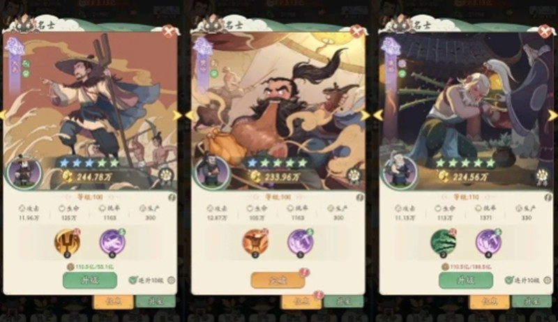 樊哙的樊哙之怒可对全体造成150%伤害并有概率眩晕敌人,有效打乱敌方节奏。他管理的酒坊产量显著提升,为战斗提供充足物资。廉颇在七雄争霸中能增强友军防御和生命恢复,廉颇之勇技能造成180%伤害并有概率使敌人虚弱。他还能提高铜矿产量,增加经济收入。