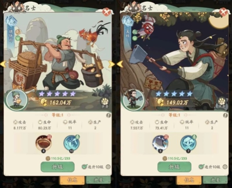 吴桂的吴桂之击可对单体造成200%伤害并有概率沉默敌人,为队友创造输出机会。他管理的木材坊产量大幅提升,为建筑和制造提供材料。烧饼郎在七雄争霸中能增强治疗效果,烧饼之护技能提供护盾和治疗。他特别擅长管理粮食坊,能显著提升粮食产量。