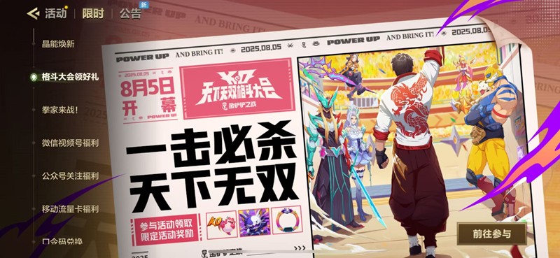 其实官方已经公布了相关信息,此次格斗大会将于8月5日上线,下面我们一起来看看格斗大会的相关玩法。