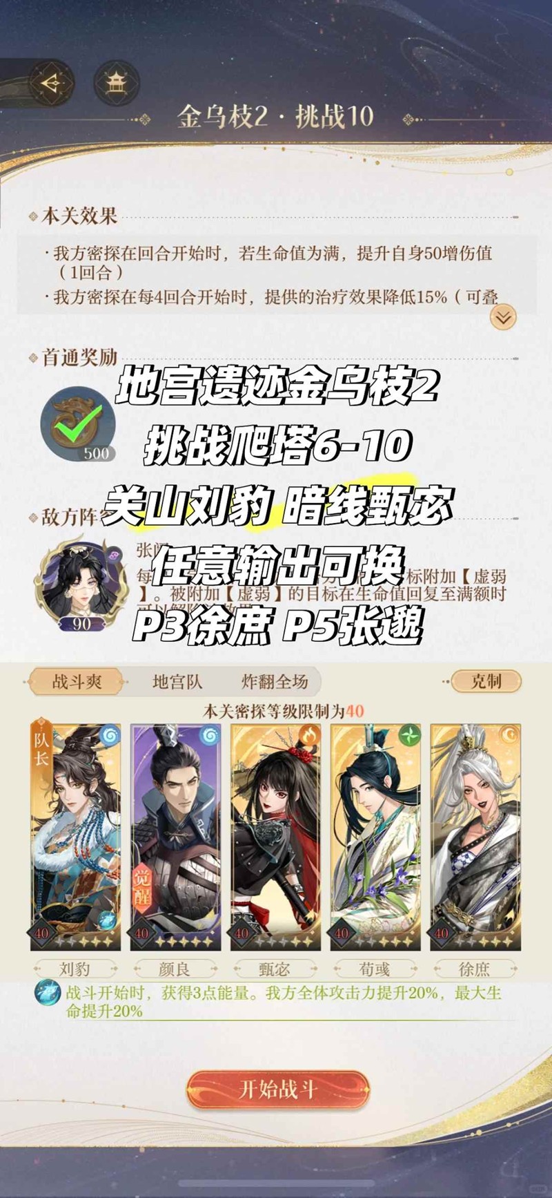 以上就是如鸢地宫遗迹挑战爬塔6-10张闿怎么打攻略的全部内容了,更多游戏资讯,攻略内容敬请关注切游网,您的支持是我们努力的动力!