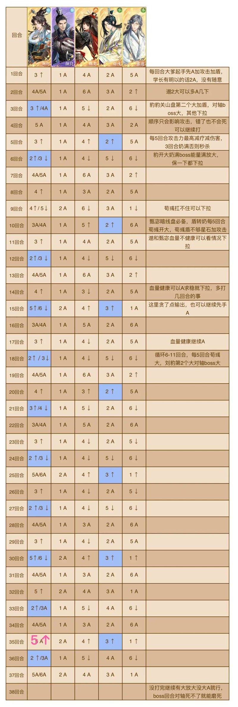 6.除了标蓝回合一定要同步外,输出顺序只会影响攻击错了都可以继续打,我的练度第10层是38回合左右,没打完的接着往下,注意对轴就行