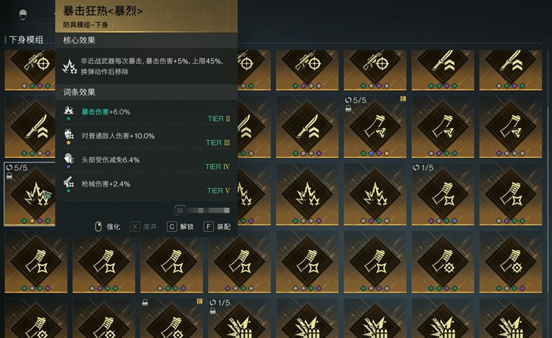 暴击狂热每次暴击后能叠加5%爆伤,最高可叠加45%。这个模组特别适合暴击率高的角色,尤其是使用步枪的玩家,能显著提升爆发伤害。
