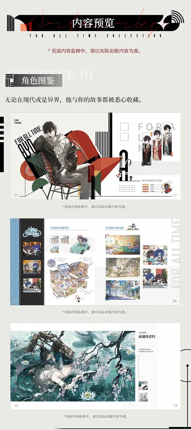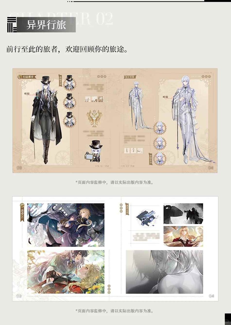 ► 美术集分为角色图鉴、异界行旅、缤纷风景、特别收录4个部分,含男主信息、主线时空、活动美术资源等内容。