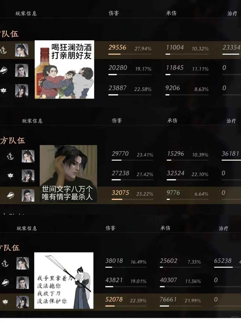 最最重要的任务就是,活着。有霖霖在就算困兽被打出来了也不要紧,去泡个水人血又满了。奶妈被抓时一定要积极拆火给奶妈拖延时间回血,顶着伤害控人,哪怕是气竭状态下主动跑到人面前引诱人点处决转移火力(问就是我干过)。奶妈血量健康了之后,集火输出威胁最大的打,把进攻优势抢回来。