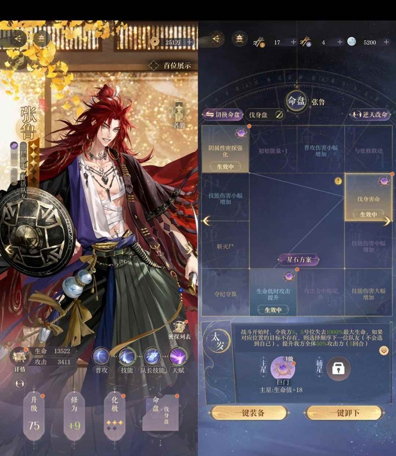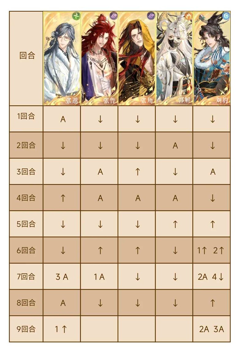 张邈队长,张鲁张角不可换,其他两个可替换同属性密探。张邈队长主要是为了+增伤,因为我方有四种不同属性密探,还有就是到后面固定属性面板的时候可以打出伤害。张鲁是因为复活,张角是打伤害的主力军。