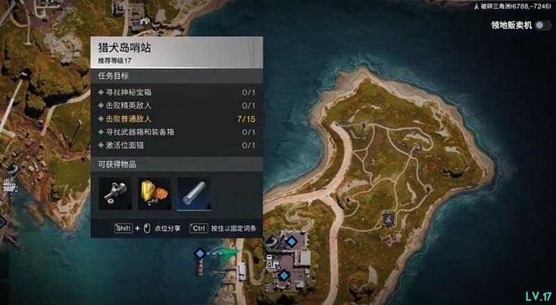 建议玩家在挑战猎犬岛前将角色等级提升到17级以上,并确保战斗力达到据点要求。成功完成据点挑战不仅能获得神秘宝箱,还能获取装备升级材料、打造材料以及地图探索度奖励。需要注意的是,进入据点后要先清理所有野怪才能安全搜寻宝藏。