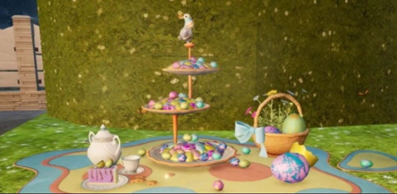 三叶草坛子采用了镂空设计,周围摆放着甜品桌、糖果、茶壶和花篮等装饰。最特别的是这些彩蛋家具都具有人物形象,它们会在场景中自由活动,使用时需要将它们"抓"回来,为家园增添了更多互动乐趣。
