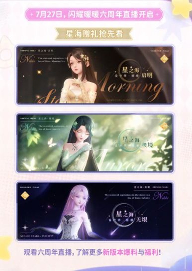 达成星光百货阶段预约:7月14日至8月2日,达成阶段预约可解锁4套六周年版本预约礼。