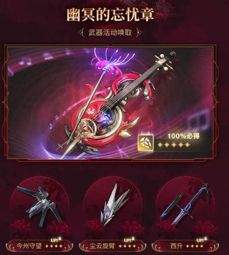 五星彩的“幽冥的忘忧章”(音感仪类别)上线。玩家可通过“浮声沉兵・幽冥的忘忧章”武器专属活动获取。