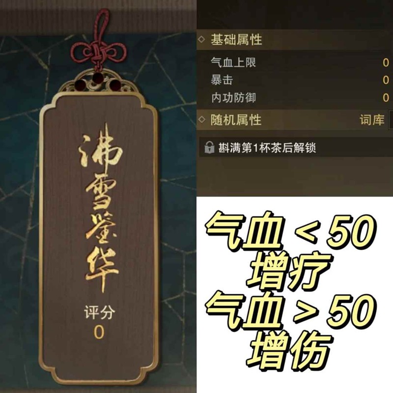 治疗:②沸雪 +4.5%最终治疗 ⑥杯盏 +9%暴伤 ④一叶 +暴击攻击buff