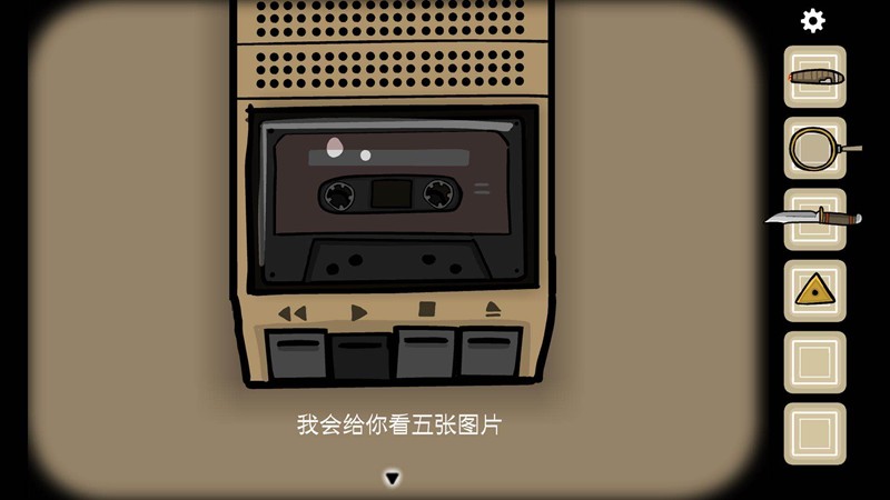 这些图片与之前心理测试中找到的5盘录音带内容存在对应关系。将录音带放入录音机播放,可以听到主角对乌鸦先生展示的5张图片的描述,分别是飞蛾、乌鸦、杀人、恐惧和自己腐坏掉的灵魂。