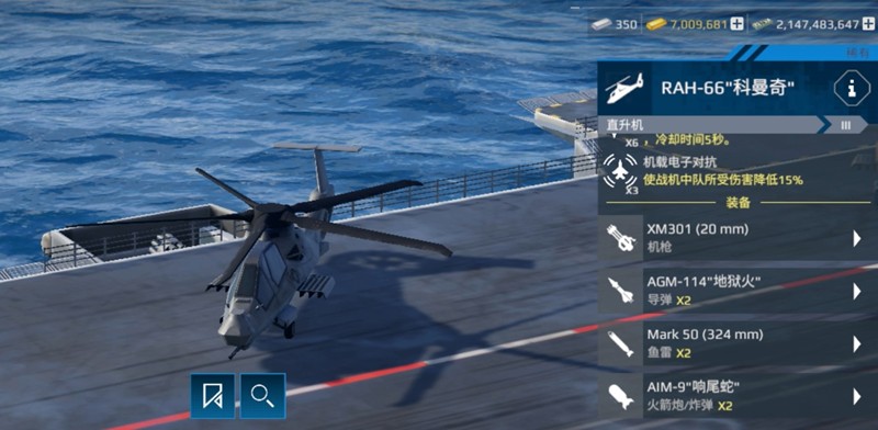科曼奇是商店可直接购买的性价比之选。这款直升机自卫性能优秀,武器系统兼顾反潜和防空功能。必要时还能执行侦察任务,整体实用性很高,特别适合资源有限的玩家使用。