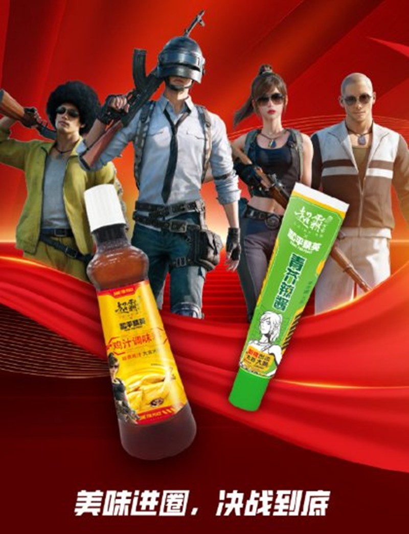 超霸世家推出的《和平精英》主题联名系列,将游戏中的经典角色、武器等元素与芥辣、鸡汁产品完美结合。联名款产品的包装上印有《和平精英》的经典元素,色彩鲜艳、造型独特,仿佛是一个个“空投补给箱”,为消费者的餐桌带来惊喜。消费者在购买和使用产品时,仿佛置身于《和平精英》的热血战场,体验到“吃鸡”般的满足感。