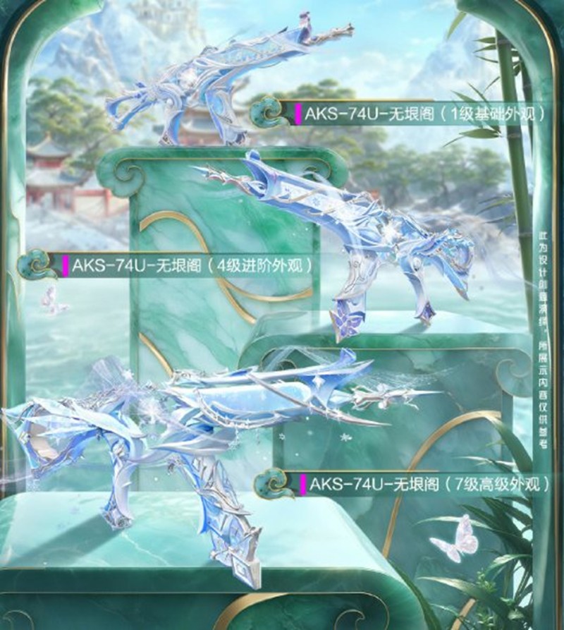 除了角色皮肤外,“无垠阁”系列还配套推出了多款武器皮肤,包括9级GROZA、AKS74U、7级ARX、普通M200、DBS和迫击炮等。这些武器皮肤不仅外观酷炫,还带有独特的特效,让玩家在战场上更加耀眼。此外,本次更新还带来了保时捷正版授权联名载具皮肤。
