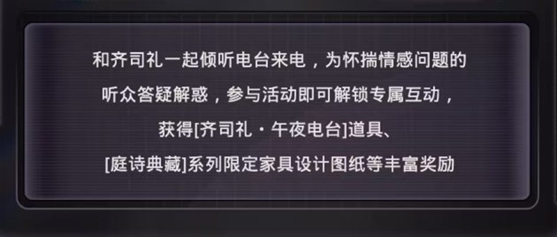 游戏内活动界面:活动期间,进入游戏主界面,点击活动按钮即可参与FM520午夜电台垂曜限时活动。