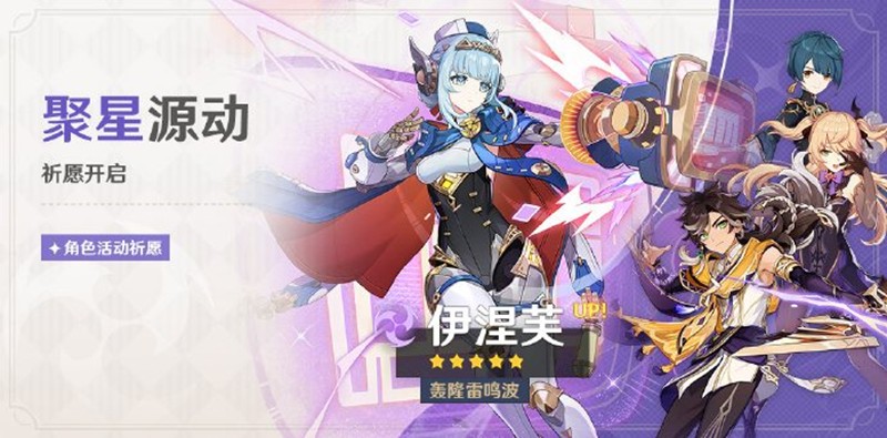 亲爱的旅行者,原神「聚星源动」活动祈愿即将开启,「轰隆雷鸣波·伊涅芙(雷)」概率UP!活动期间,旅行者可以在活动祈愿中获得更多角色与武器,组建强大的队伍!