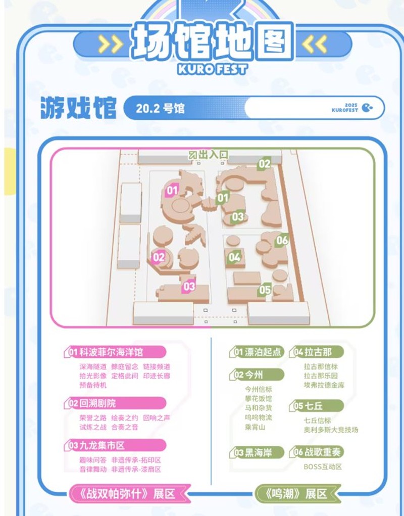 游戏馆20.2号馆:科波菲尔海洋馆、回溯剧院、九龙壁市区、《战双帕弥什》展区、漂泊起点、今州、拉古那、七丘、黑海岸等。