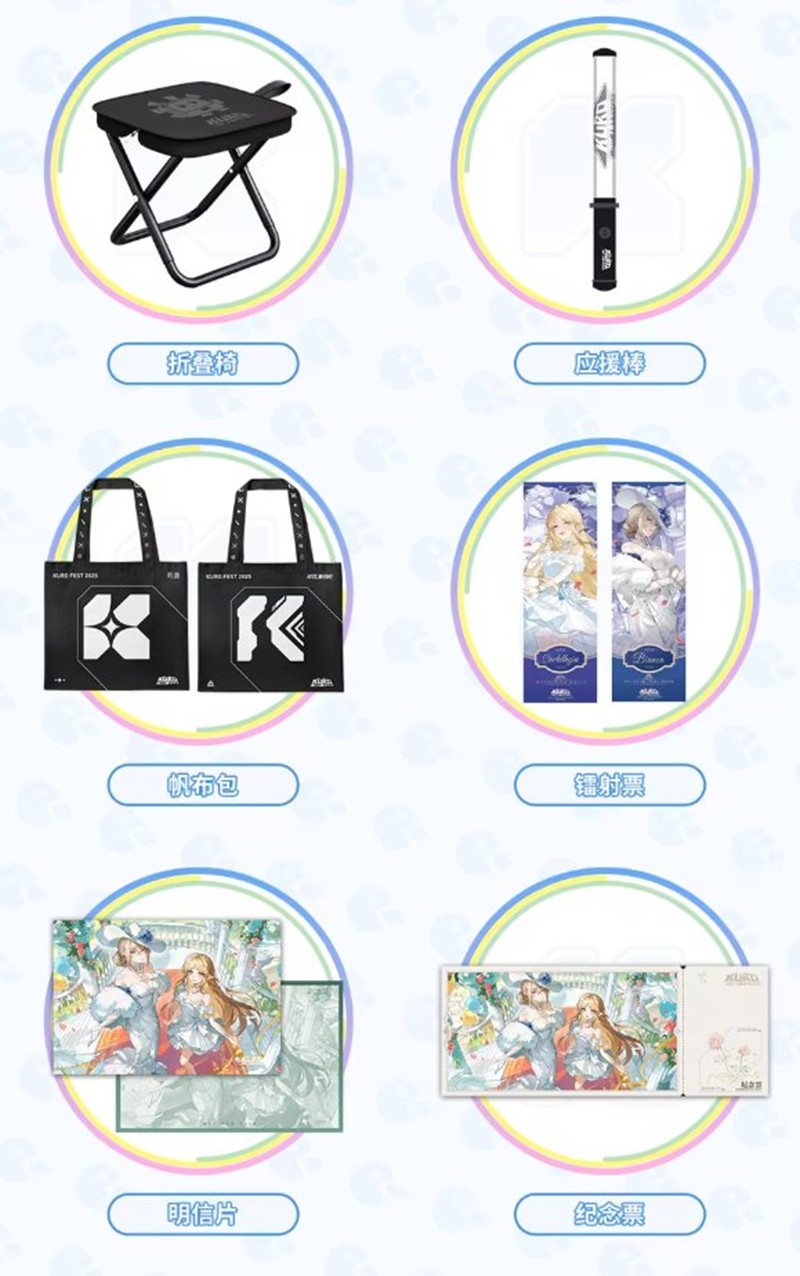 折叠椅、应援棒、帆布包、镭射票、明信片、纪念票等。