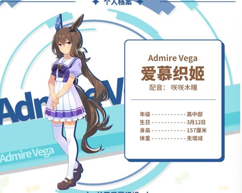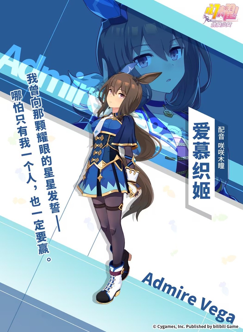 闪耀优俊少女是一款由Cygames开发,bilibili游戏发行的赛马娘题材手游。近日,游戏官方公布了一位全新的角色——爱慕织姬(Admire Vega),并发布了其详细的角色档案。我们来一起看看吧~