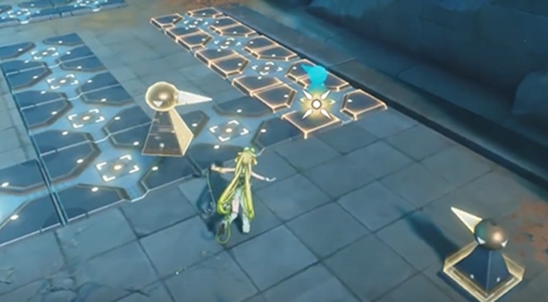 来到北落野指定位置后,会看到两个发光积木块和一些特殊布局。先往左边走跳下去,沿着小路前进就能找到缺失的两个发光积木。第一个积木要放在布局的左下角位置,第二个则要放在右下角。接着把上方的积木块扔到布局中间处。