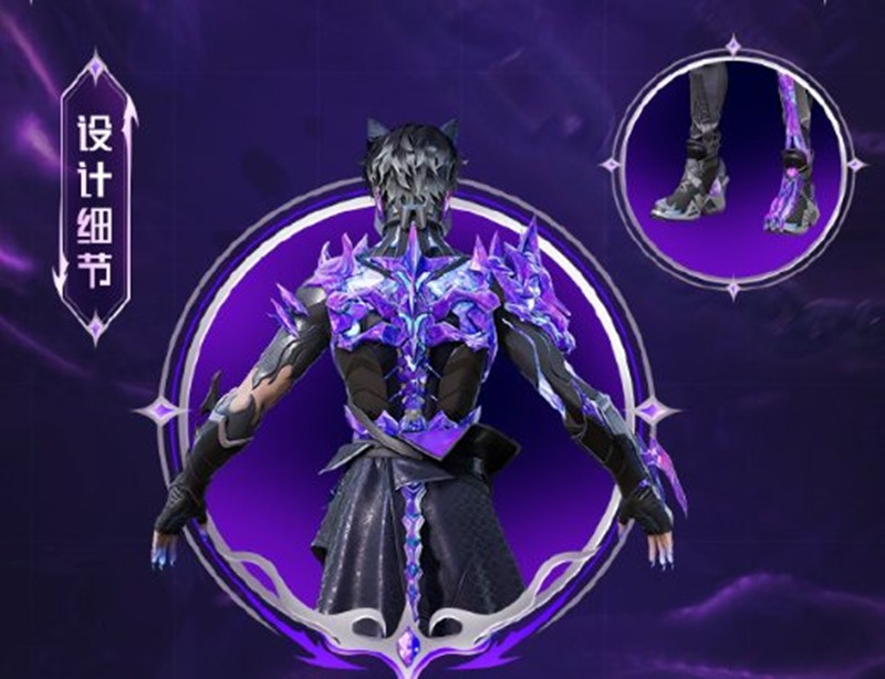 “钛晶裂爪”系列皮肤的设计灵感来源于兽化失控的狼人,将原始野性与科技力量完美融合。皮肤整体采用神秘坚固的紫水晶骨架,如战甲般包裹上半身,极具威慑力的紫水晶狼头伏于右肩,能量核心在健壮的胸前熠熠生辉,宛如半兽战神,气势凛然。