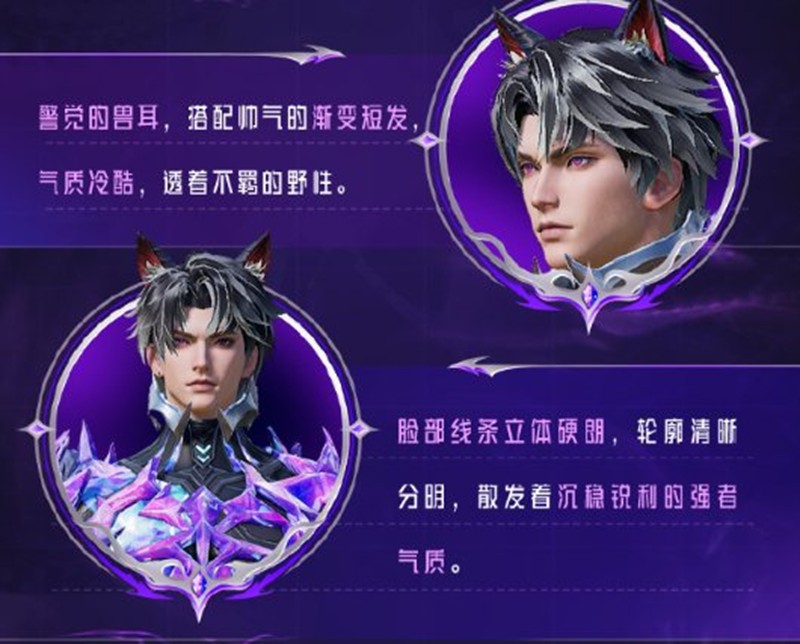 我们可以从图中看见,角色拥有野性的兽耳,搭配帅气的渐变短发,眼神冷酷,透着不羁的野性。脸部线条立体硬朗,轮廓清晰分明,散发着沉稳锐利的强者气质。