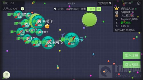 当你的体积大于绿刺时,就可以用身体去吃掉刺,虽然它会把你的身体分割成很多小球,但是你的体积确实是在变大哦!不过大家在吞噬绿刺的时候,一定要记住查探周围的环境,千万不要被阴了哦~