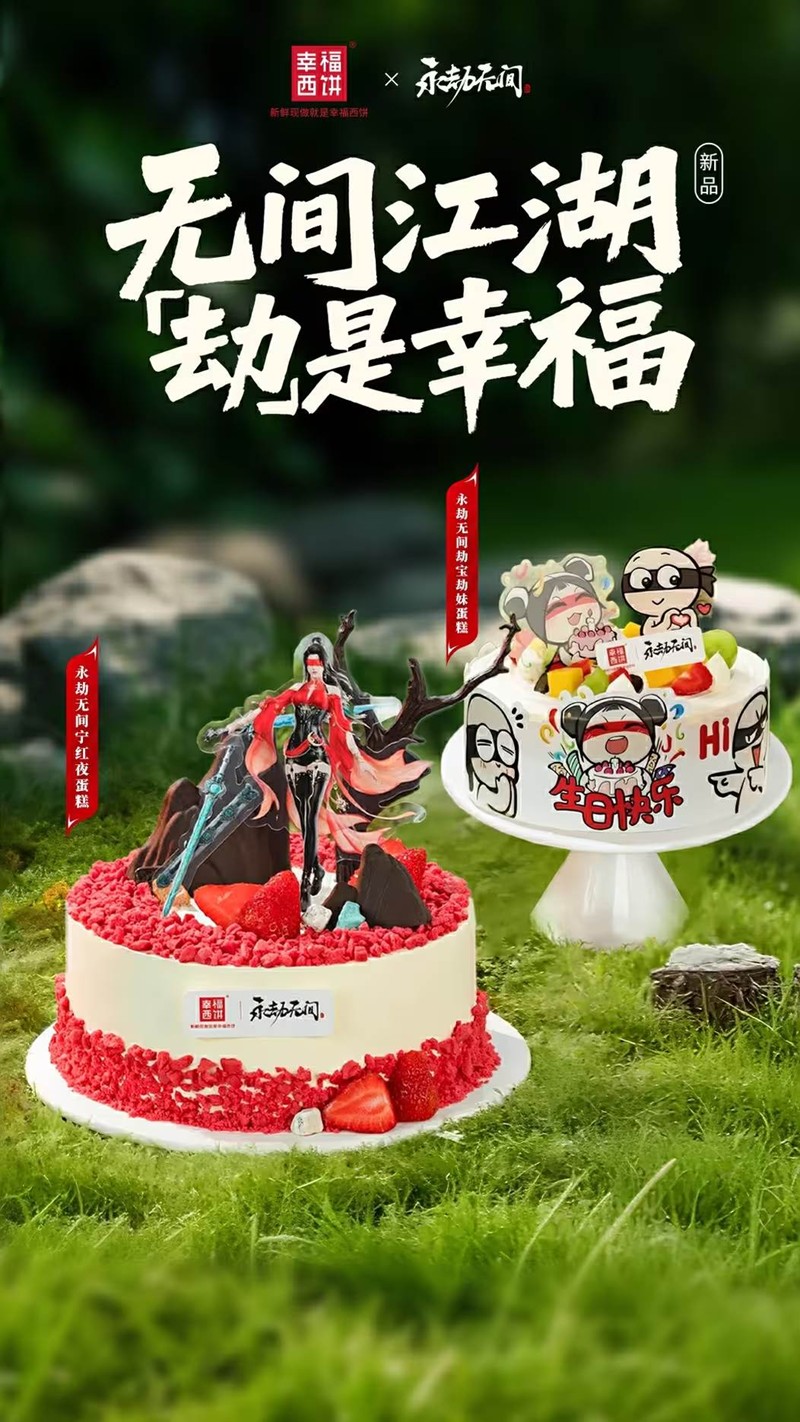 永劫无间与幸福西饼的联名蛋糕已经正式上线了,此次联动推出两款限定蛋糕:劫宝劫妹和宁红夜主题蛋糕。为玩家带来别样的甜蜜体验~