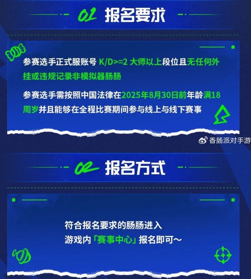参赛选手需使用正式服账号,账号等级需达到K/D>=2,大师以上段位且无任何外挂或违规记录。参赛选手需按照中国法律在2025年8月30日前年满18周岁,并且能够在全程比赛期间参与线上与线下赛事。