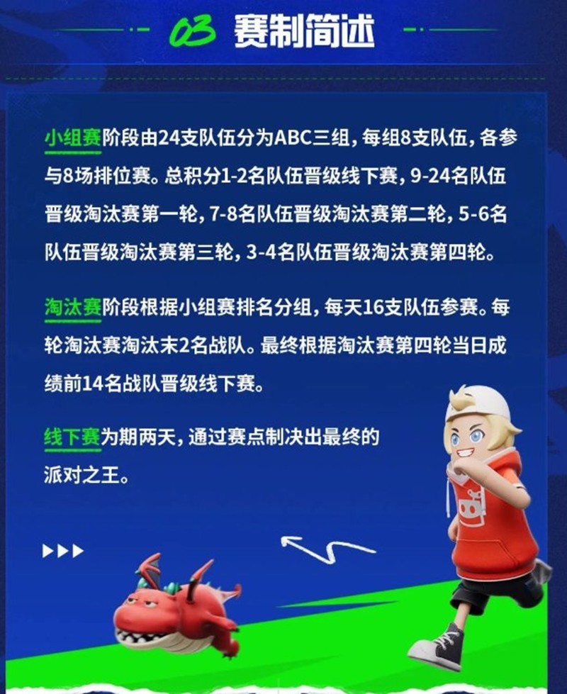 线下赛:为期两天,通过赛点制决出最终的派对之王。