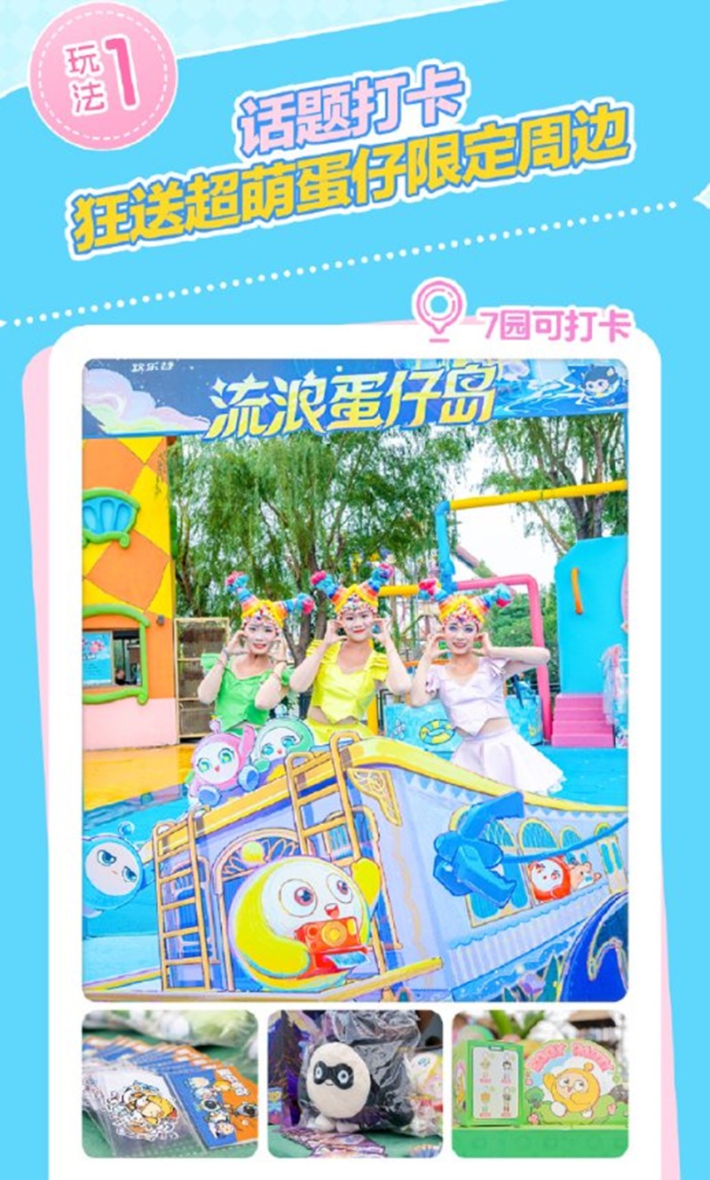 在欢乐谷内,玩家可以通过参与话题打卡活动,赢取超萌的蛋仔限定周边。只需在指定地点拍照并分享到社交媒体,就有机会获得这些可爱的纪念品。