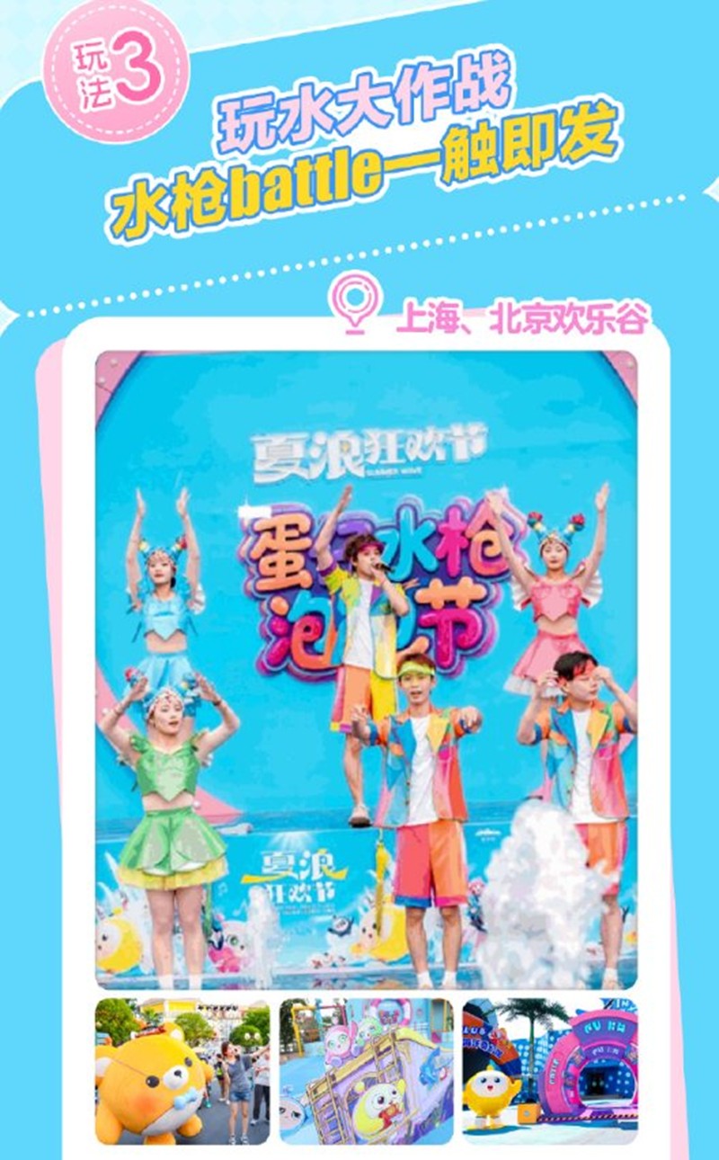 在上海和北京的欢乐谷,玩家可以参与蛋仔水枪节,解锁蛋仔的100种玩水姿势,清凉值MAX,快乐值爆表,一起“浪”到飞起,嗨翻整个夏天!