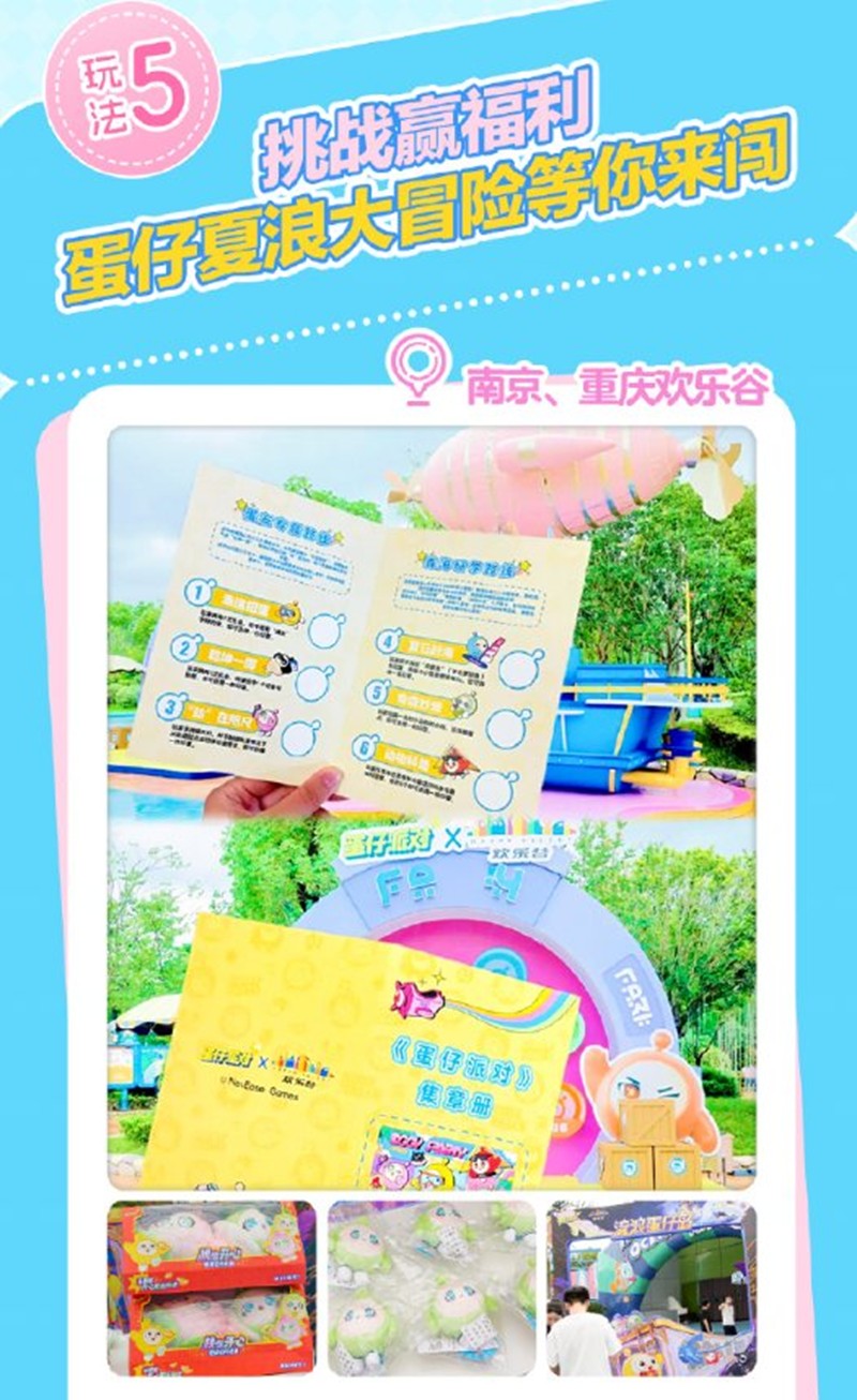 在南京和重庆的欢乐谷,玩家可以通过参与蛋仔集章册集印章赢零食,开启蛋友专属路线,参与咸鱼大作战、知识抢答、趣味实验秀等挑战玩法,搭子参与感UPUP,智勇双全赢限定福利。