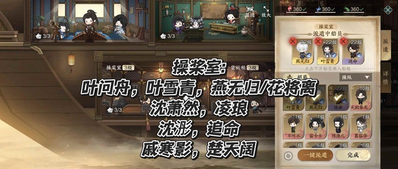 【缺数值】的老师【不要用一键派遣】,逆水寒的一键有毛病,一键派遣不看船员技能只看等级。比如你22级的姬蜜儿可能就会被放到船长室,21级适合船长室的杨未雪就会放其他部门。一键派遣数值也够的老师就不用管啦