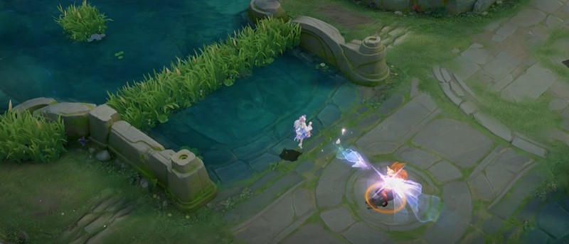 陆地效果:飞花从环形薄纱中掷出,命中后迸作花瓣飞舞。